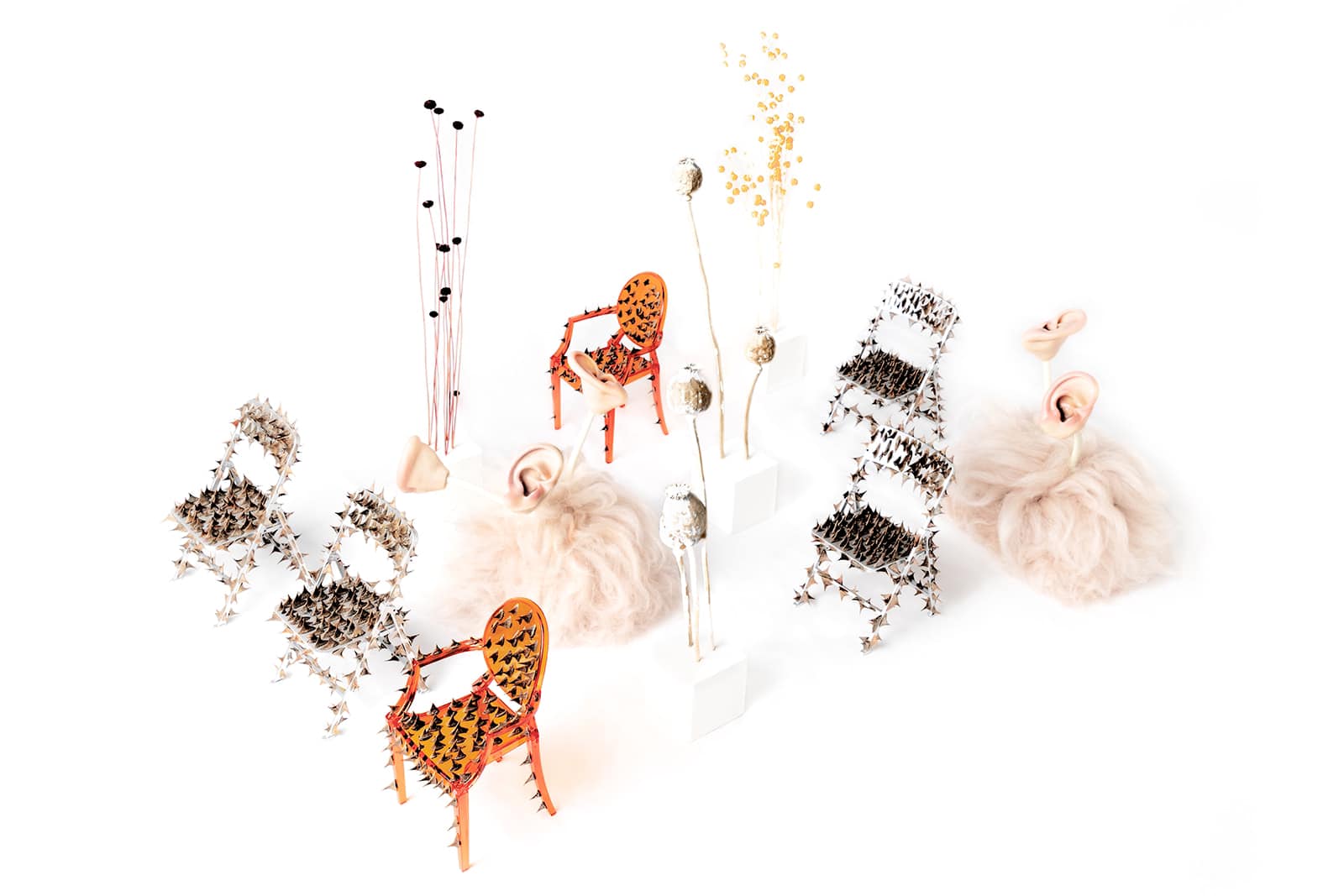 Il manufatto ha delle chiare discendenze surrealiste e dadaiste, viene sicuramente in mente Colazione in pelliccia di Meret Oppenheim, opera emblematica realizzata a partire da uno degli oggetti tipici della quotidianità: una tazza da the. Il rivestimento di pelliccia color crema-marrone chiaro di gazzella cinese allora suscitò reazioni pruriginose. Similmente a quanto appena espresso, la sedia dell’installazione rimanda ad una situazione spiacevole da dover affrontare: le spine che la rivestono, sono la concretizzazione di un paradosso, dal momento che essa perde completamente il ruolo a cui l’uso comune la destina, proprio come accade per la tazza di cui sopra.